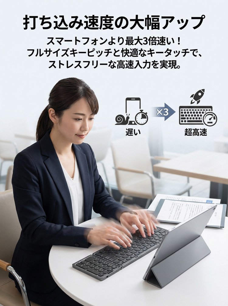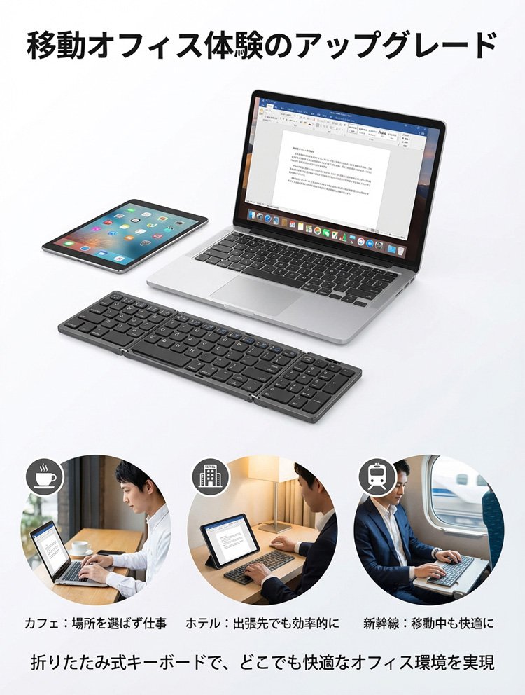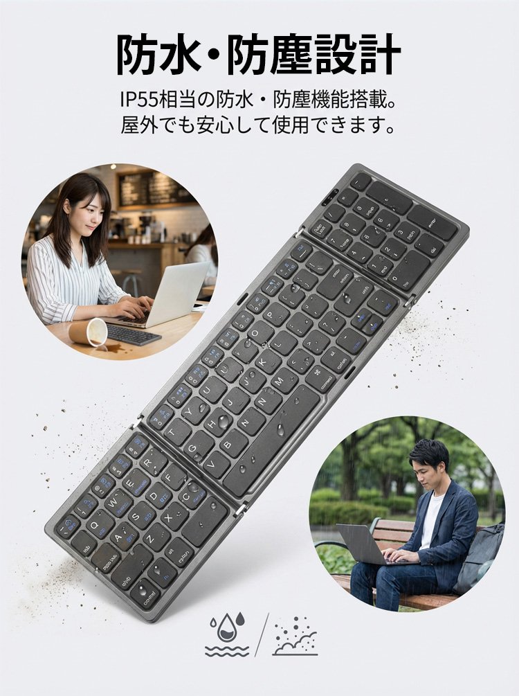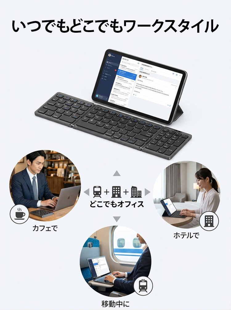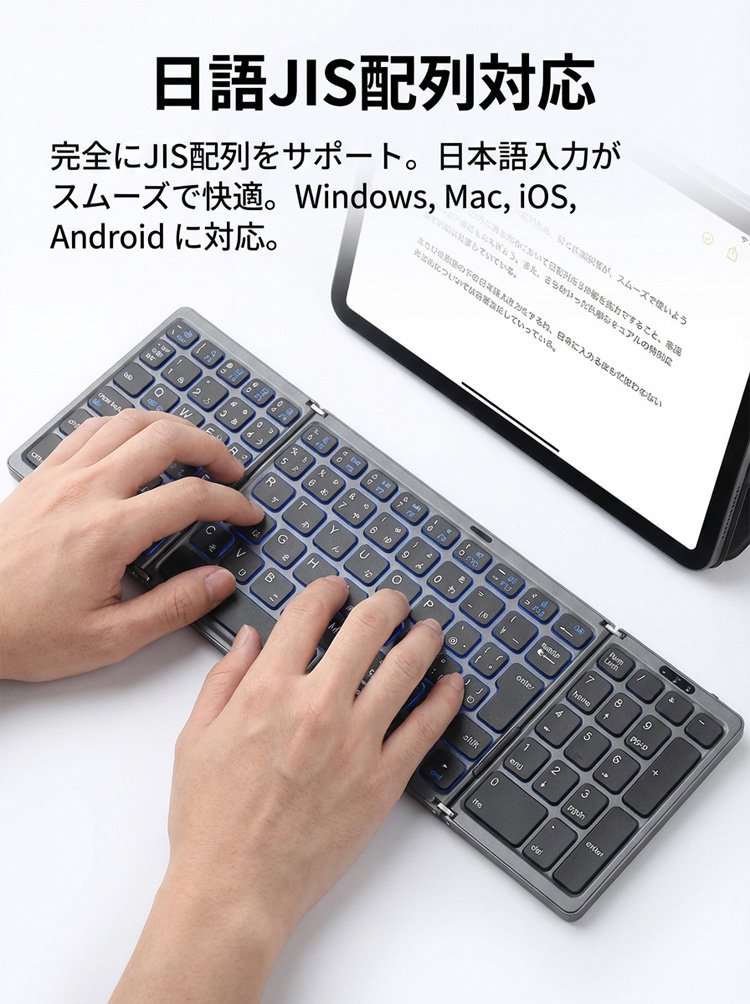 3つ折り式Bluetoothワイヤレスポータブルキーボード