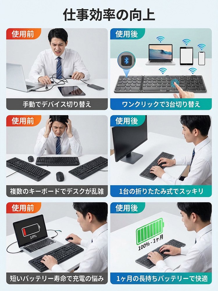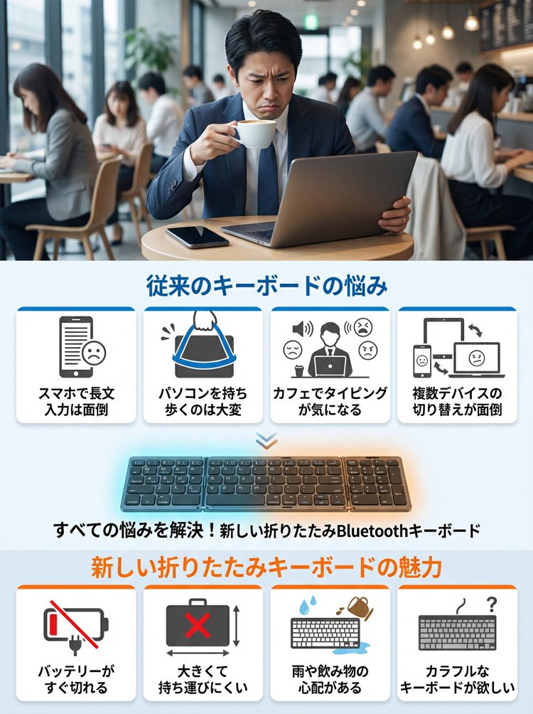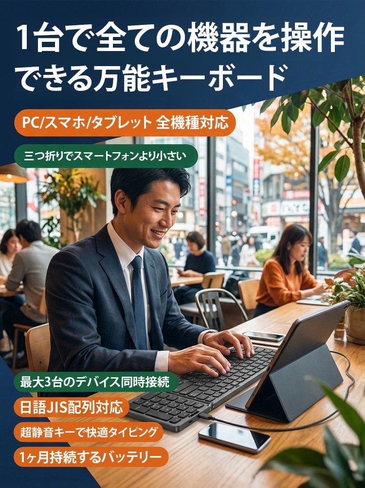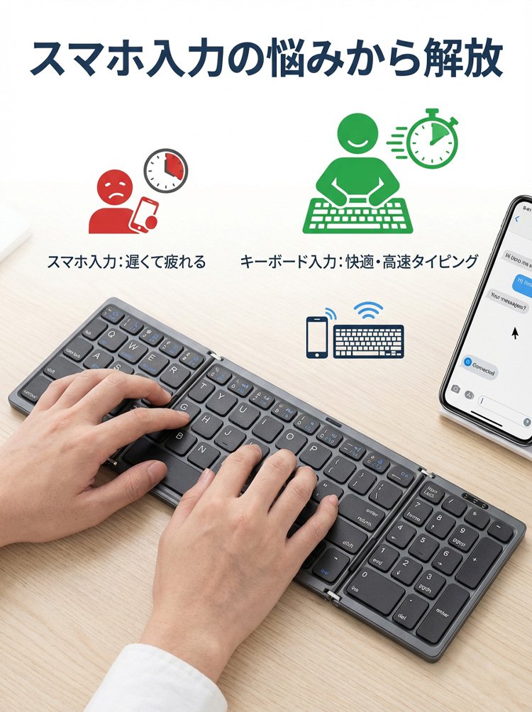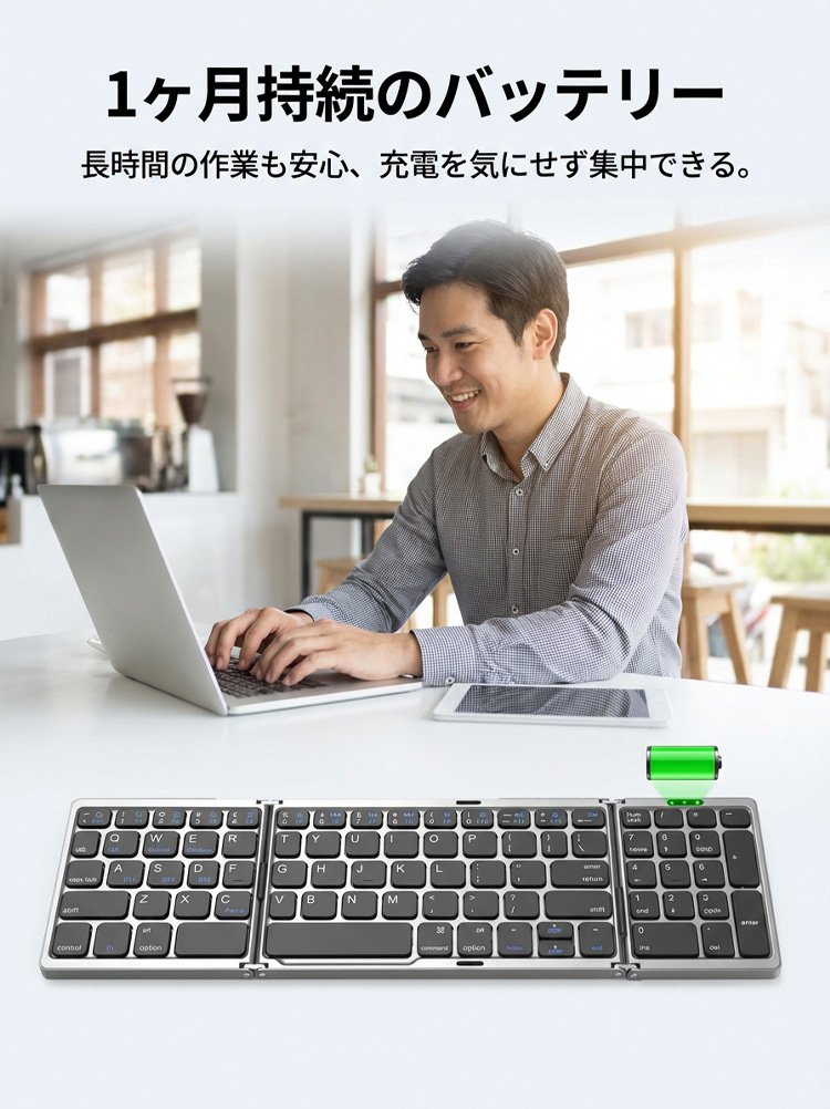 3つ折り式Bluetoothワイヤレスポータブルキーボード